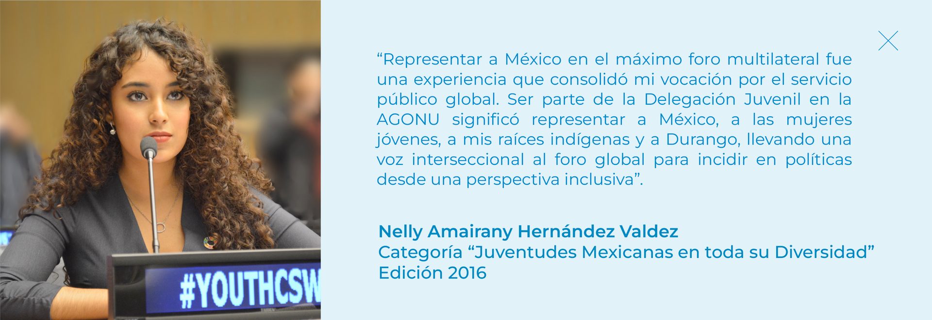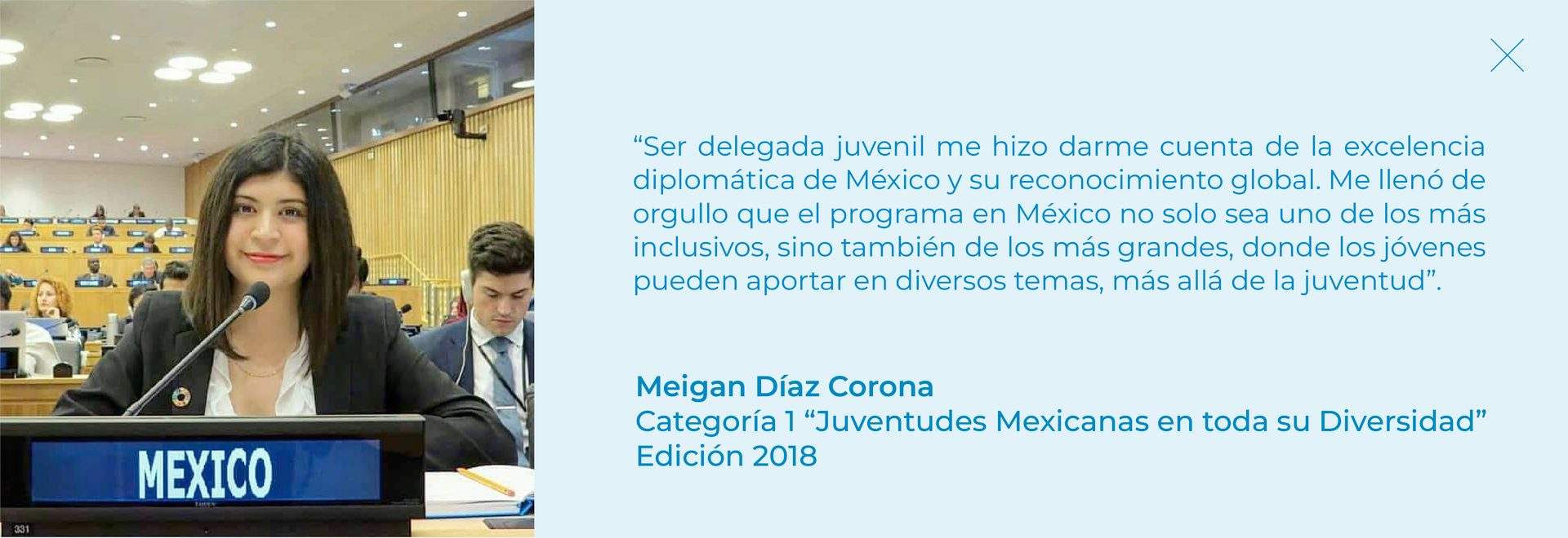 Con ocho jóvenes representantes hasta hoy (5 mujeres y 3 hombres), esta Categoría ha fortalecido la diplomacia juvenil mexicana al incorporar una perspectiva transnacional y promover una política exterior más inclusiva y con enfoque de derechos.