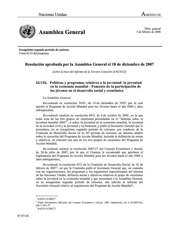 El Pacto para el Futuro y la Declaración sobre las Generaciones Futuras, adoptados en 2024 por los Estados Miembros de la ONU, nos convocan a ampliar los espacios de participación y toma de decisión de las juventudes, a consolidar un diálogo genuinamente intergeneracional y a garantizar que las decisiones de hoy sean tomadas con la mirada puesta en el mañana.