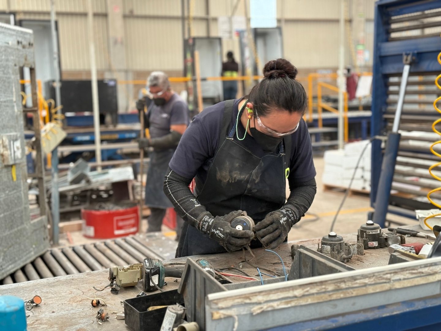 El desarrollo industrial inclusivo y sostenible requiere del talento de todas las personas. En esta imagen, una técnica trabaja en el desmontaje y recuperación de componentes de equipos de refrigeración, como parte de un programa apoyado por ONUDI en México. A través de alianzas con el sector privado y el gobierno mexicano, ONUDI promueve la innovación tecnológica, la economía circular y la capacitación técnica con enfoque de género. La participación activa de mujeres en sectores industriales tradicionalmente masculinizados es clave para construir una industria más inclusiva, resiliente y comprometida con los objetivos de desarrollo sostenible.