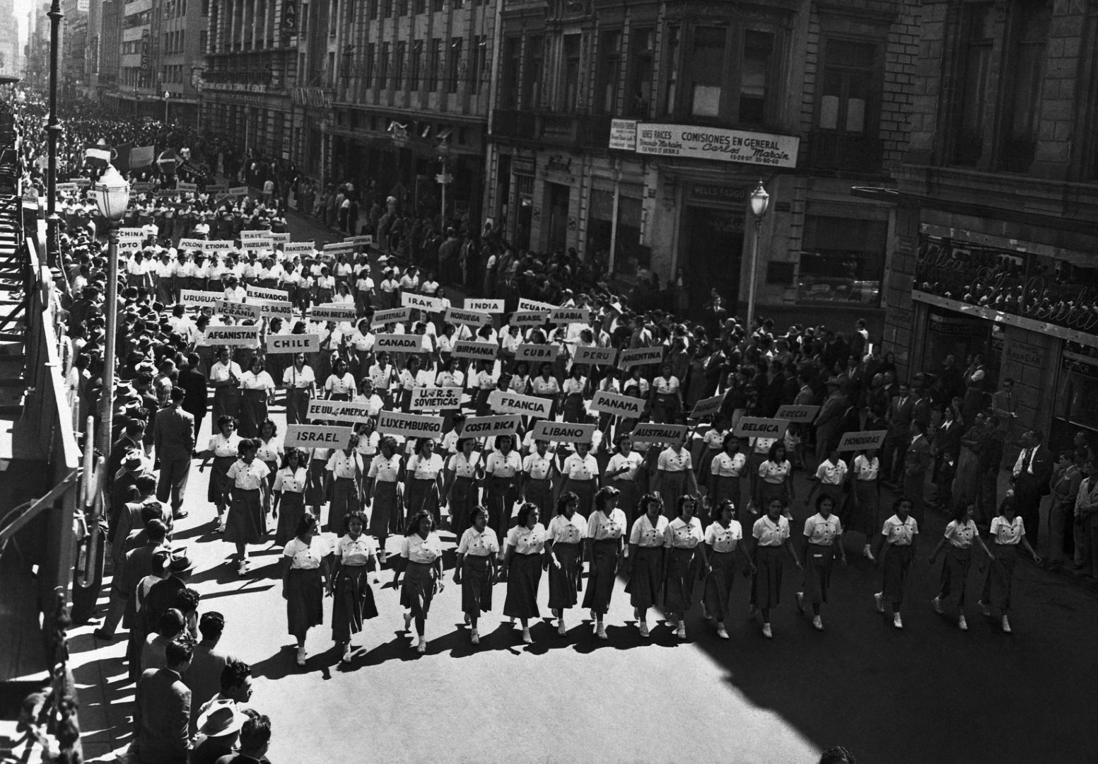 Desfile en la Ciudad de México por el Día de la ONU, octubre de 1950