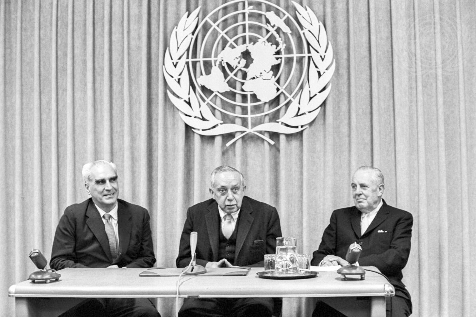 Foto 2. El entonces canciller, Emilio O. Rabasa (1970-1975), pronuncia un discurso durante el Debate General del XXVIII Periodo de Sesiones de la AGONU, donde refiere los principales desafíos internacionales de la Guerra Fría, haciendo énfasis en la necesidad de fortalecer el multilateralismo, promover la cooperación y defender los principios de paz, igualdad soberana y no intervención.